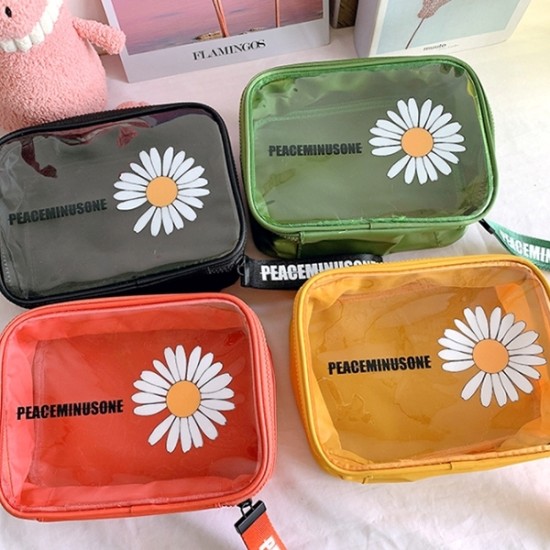 CUTE & FUNCTIONAL DESIGN: The see-through design makes you don't need to dig into the bag to get what you need with it. The vivid daisy flower printing on the bag brings a good look to the bag, and a casual, relaxed and cheerful feeling MAXIMIZE LUGGAGE SPACE – Size is 21*9*15cm. large capacity for brushes, eyebrow pencils, mascara, lipstick, air cushion and powder for cosmetics, toiletries, jewellery, perfume, lipstick, facial cleanser, passport, school supplies and so on. Premium Quality: This Reusable and Waterproof daisy flower makeup bag is simply clean with almost any surface cleaner and air dry and your bag will be good as new SECURE & SAFE – Made from an Eco-Friendly Durable PVC Material, Precise stitching, Strong and Smooth Zipper Closure Ensures your Toiletries Stay Secure Inside. Package Included: 1 piece daisy make-up bag ONLY, the others on photos are not included. It is a perfect bag for travel, sports or other outdoor activities, and a great gift for girls in 2023