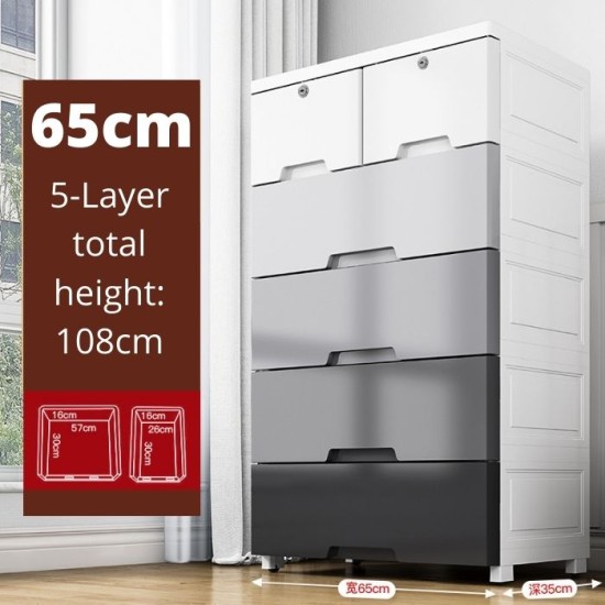 Extra Large 5-Layer Plastic Storage Drawer Box Cabinet 65cm Size: Length 65cm, Height 108cm Drawer Capacity: Small 26*30*16cm, Large: 57*30*16cm Strong & Durable Each layer's capacity: Max 20kg Two smaller drawers on top with lock Durable PP material Please note: Install in environment above 0℃. If parcel is too cold when you receive it, leave in room temperature for a while before you begin. Important warning: Do not put item close to high temperature environment such as fireplace/ BBQ ovens as plastic will melt. Do not use brush/cleaning powders to scrub the plastic surface. For cleaning, use mild detergent & sponge. Dry with soft cloth.