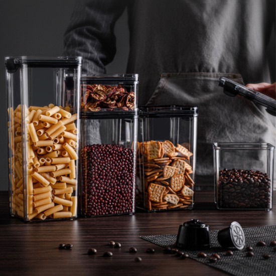 - Clear food containers have a sleek and stylish design, making them ideal for displaying cereal, ingredients, snacks and more on your kitchen counter